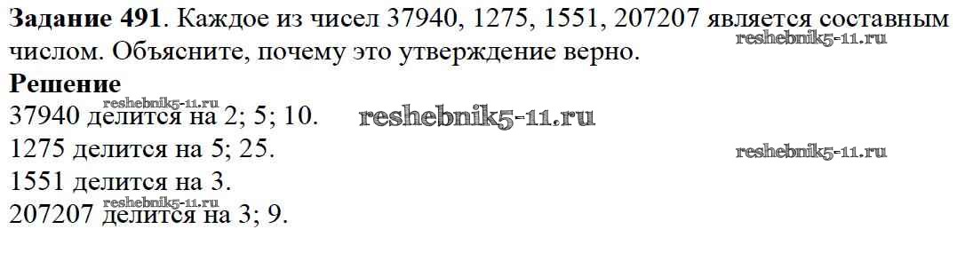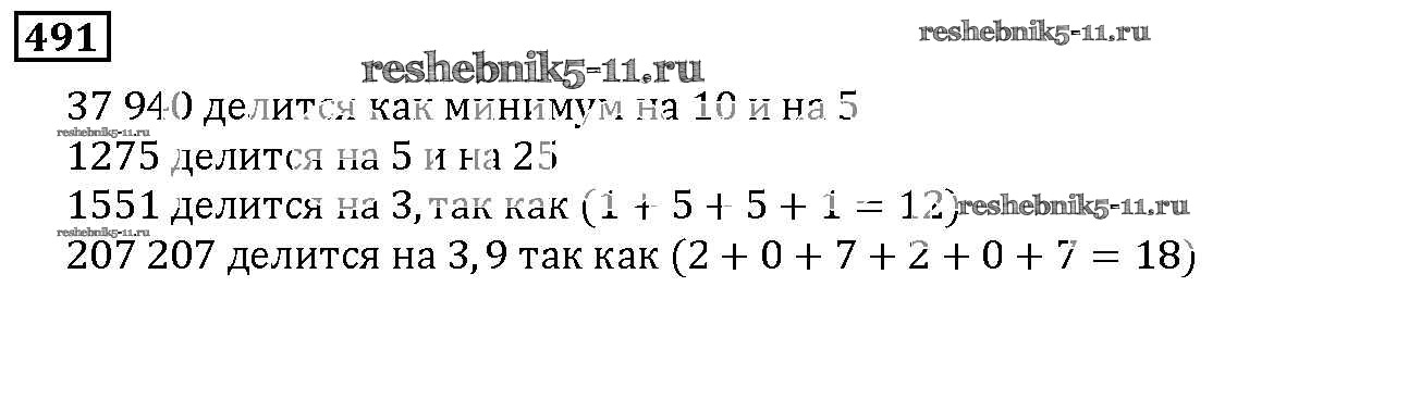 Готовая домашняя работа с ответами по Математике за 5 класс Дорофеев, Шарыгин, Суворова, Бунимович, Кузнецова, Минаева, Рослова Учебник Просвещение 2015 ФГОС - 6.4. Признаки делимости 491