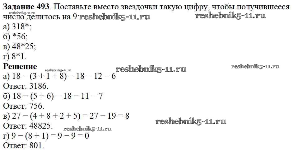 Готовая домашняя работа с ответами по Математике за 5 класс Дорофеев, Шарыгин, Суворова, Бунимович, Кузнецова, Минаева, Рослова Учебник Просвещение 2015 ФГОС - 6.4. Признаки делимости 493