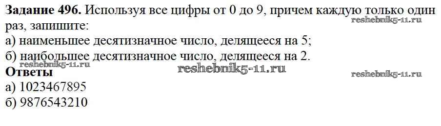 Готовая домашняя работа с ответами по Математике за 5 класс Дорофеев, Шарыгин, Суворова, Бунимович, Кузнецова, Минаева, Рослова Учебник Просвещение 2015 ФГОС - 6.4. Признаки делимости 496