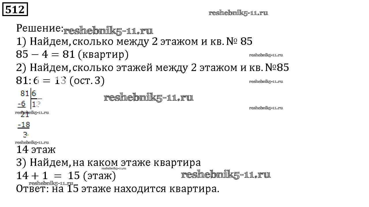 Готовая домашняя работа с ответами по Математике за 5 класс Дорофеев, Шарыгин, Суворова, Бунимович, Кузнецова, Минаева, Рослова Учебник Просвещение 2015 ФГОС - 6.5. Деление с остатком 512
