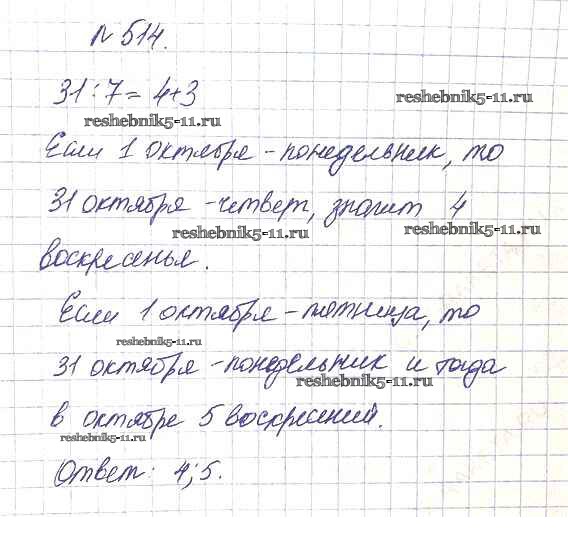 Готовая домашняя работа с ответами по Математике за 5 класс Дорофеев, Шарыгин, Суворова, Бунимович, Кузнецова, Минаева, Рослова Учебник Просвещение 2015 ФГОС - 6.5. Деление с остатком 514