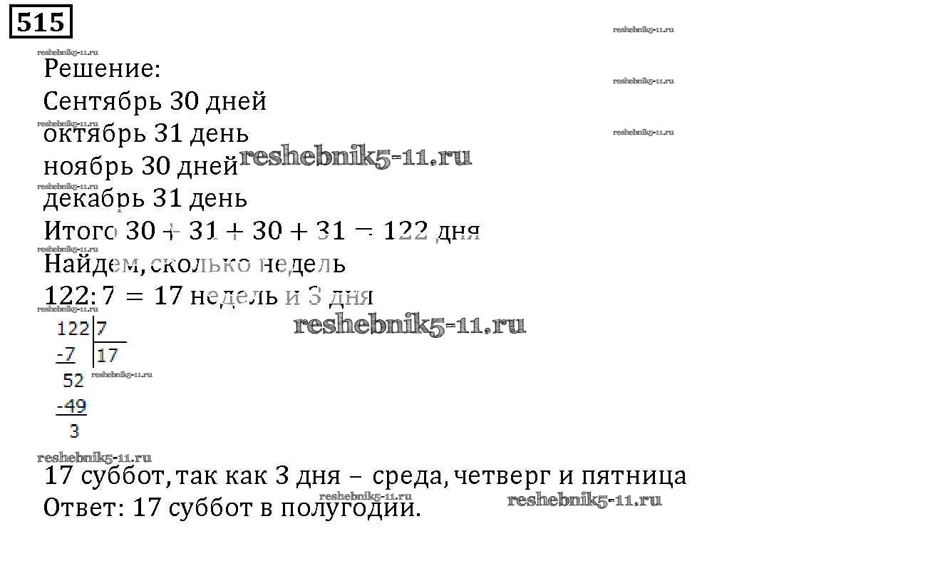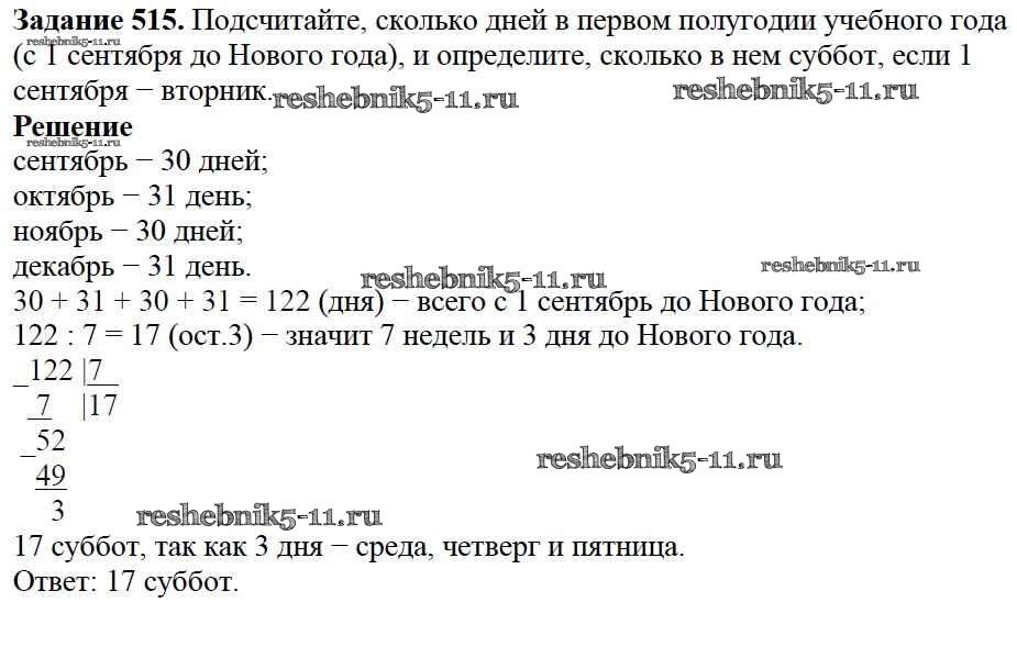 Готовая домашняя работа с ответами по Математике за 5 класс Дорофеев, Шарыгин, Суворова, Бунимович, Кузнецова, Минаева, Рослова Учебник Просвещение 2015 ФГОС - 6.5. Деление с остатком 515