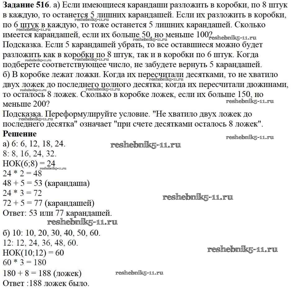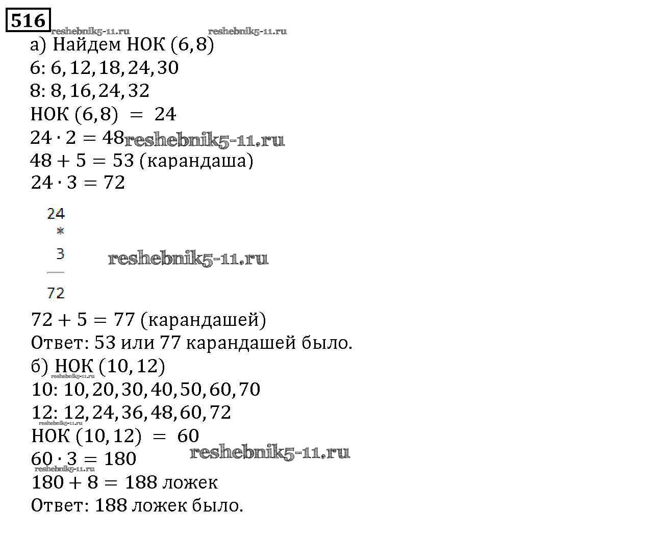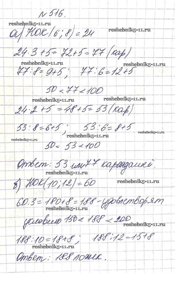 Готовая домашняя работа с ответами по Математике за 5 класс Дорофеев, Шарыгин, Суворова, Бунимович, Кузнецова, Минаева, Рослова Учебник Просвещение 2015 ФГОС - 6.5. Деление с остатком 516