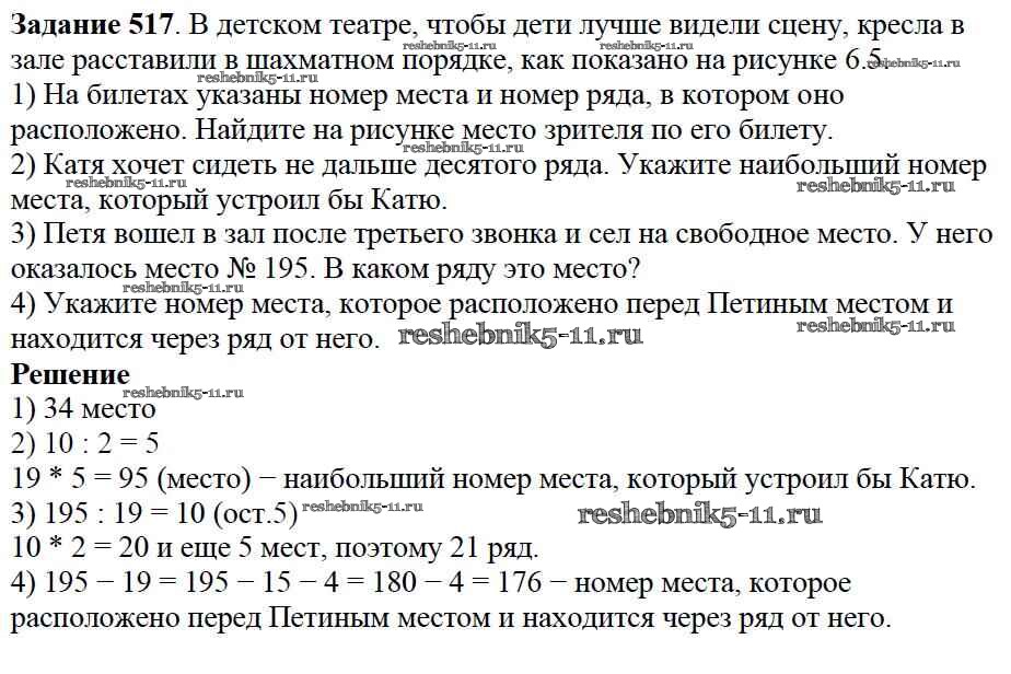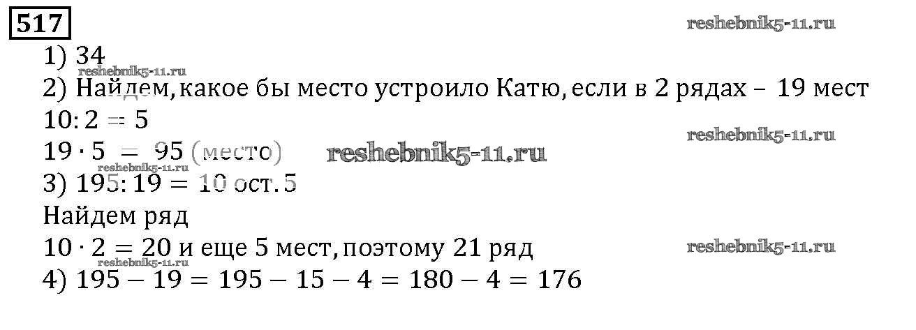 Готовая домашняя работа с ответами по Математике за 5 класс Дорофеев, Шарыгин, Суворова, Бунимович, Кузнецова, Минаева, Рослова Учебник Просвещение 2015 ФГОС - 6.5. Деление с остатком 517