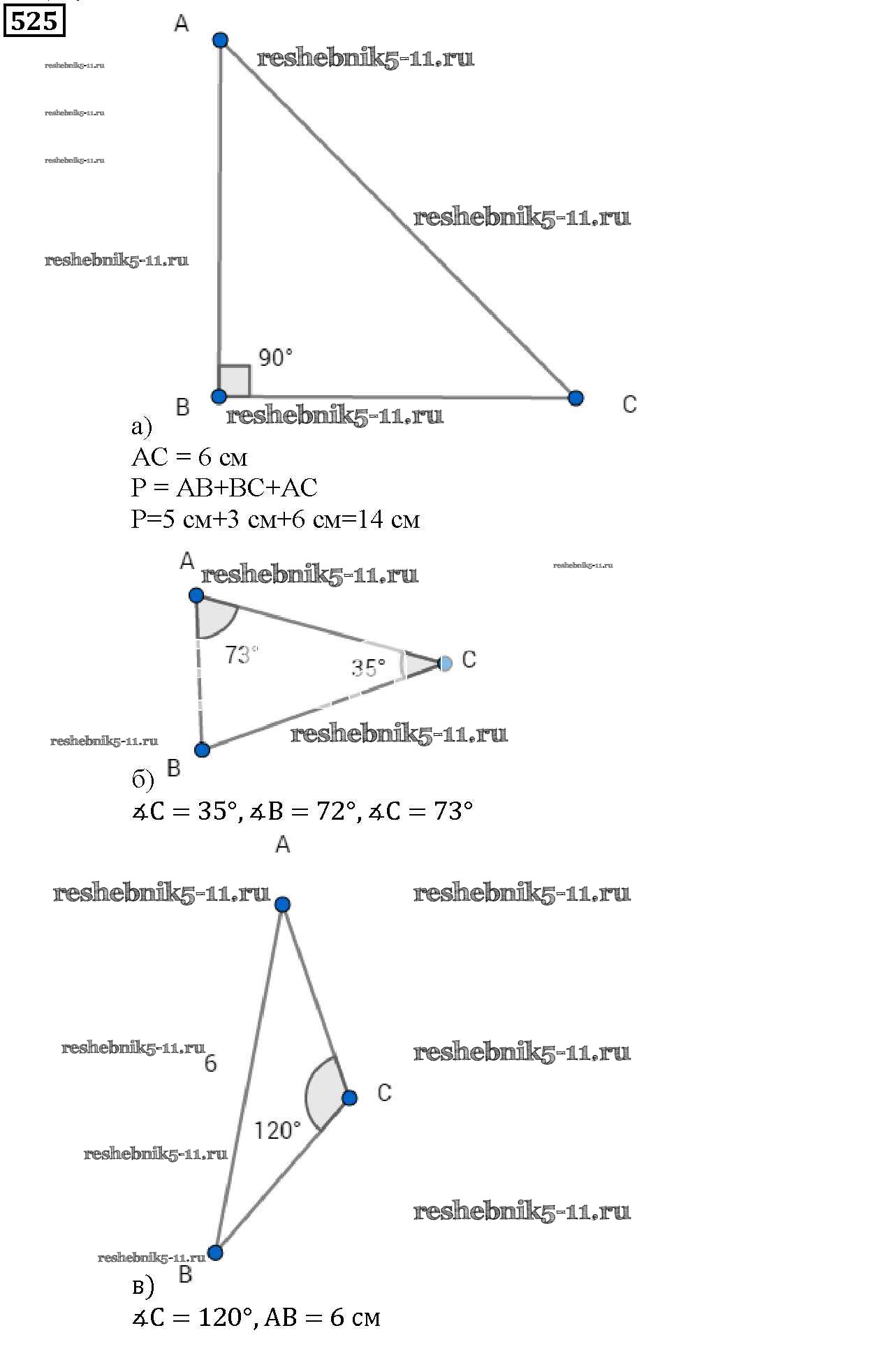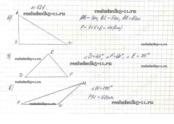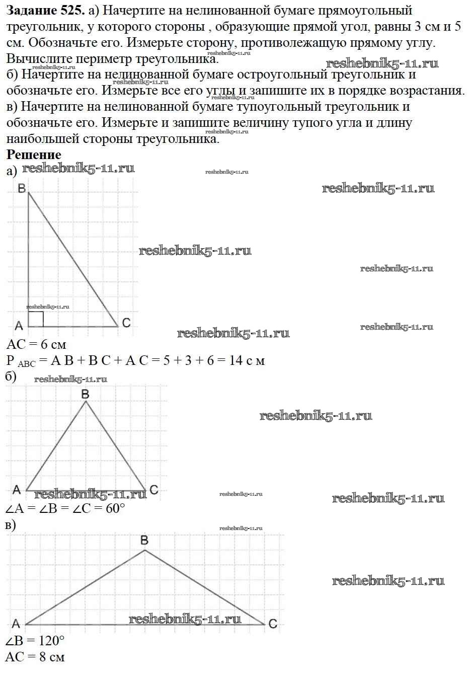 Готовая домашняя работа с ответами по Математике за 5 класс Дорофеев, Шарыгин, Суворова, Бунимович, Кузнецова, Минаева, Рослова Учебник Просвещение 2015 ФГОС - 7.1. Треугольники и их виды 525