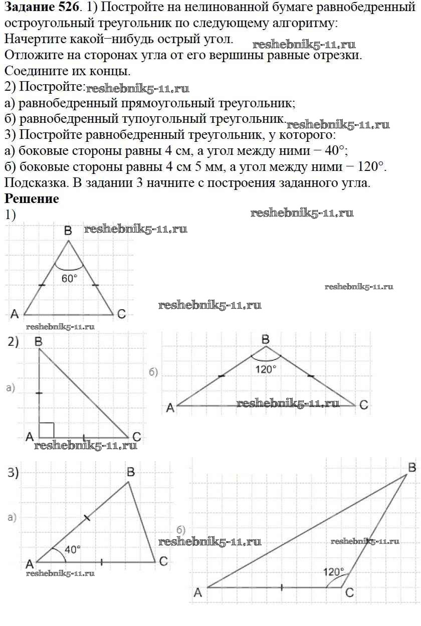 Готовая домашняя работа с ответами по Математике за 5 класс Дорофеев, Шарыгин, Суворова, Бунимович, Кузнецова, Минаева, Рослова Учебник Просвещение 2015 ФГОС - 7.1. Треугольники и их виды 526