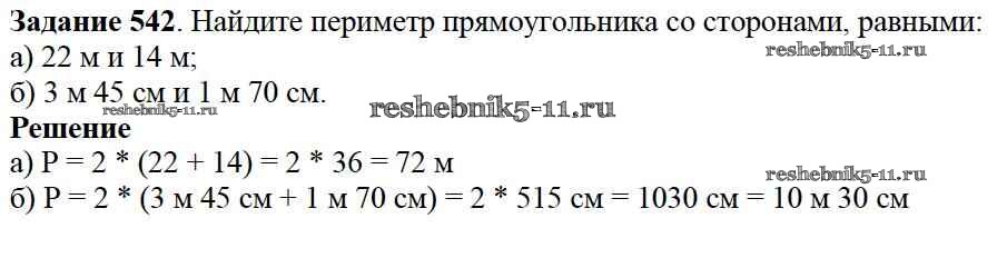 Готовая домашняя работа с ответами по Математике за 5 класс Дорофеев, Шарыгин, Суворова, Бунимович, Кузнецова, Минаева, Рослова Учебник Просвещение 2015 ФГОС - 7.2. Прямоугольники 542