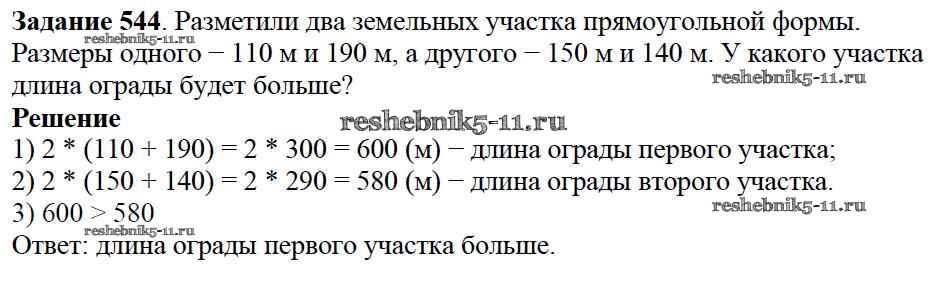 Готовая домашняя работа с ответами по Математике за 5 класс Дорофеев, Шарыгин, Суворова, Бунимович, Кузнецова, Минаева, Рослова Учебник Просвещение 2015 ФГОС - 7.2. Прямоугольники 544