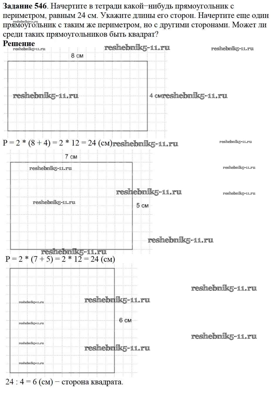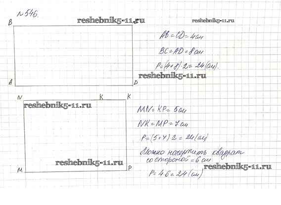 Готовая домашняя работа с ответами по Математике за 5 класс Дорофеев, Шарыгин, Суворова, Бунимович, Кузнецова, Минаева, Рослова Учебник Просвещение 2015 ФГОС - 7.2. Прямоугольники 546