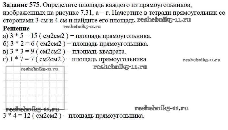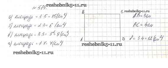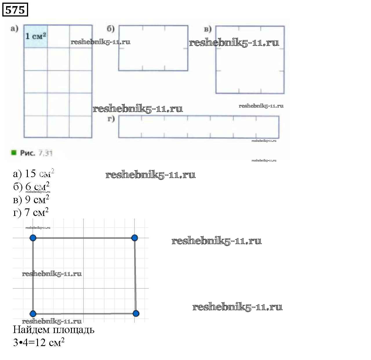 Готовая домашняя работа с ответами по Математике за 5 класс Дорофеев, Шарыгин, Суворова, Бунимович, Кузнецова, Минаева, Рослова Учебник Просвещение 2015 ФГОС - 7.4. Площадь прямоугольника 575