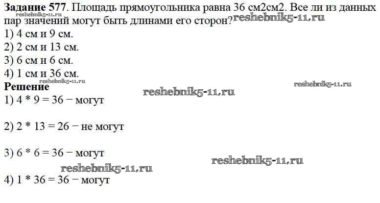Готовая домашняя работа с ответами по Математике за 5 класс Дорофеев, Шарыгин, Суворова, Бунимович, Кузнецова, Минаева, Рослова Учебник Просвещение 2015 ФГОС - 7.4. Площадь прямоугольника 577