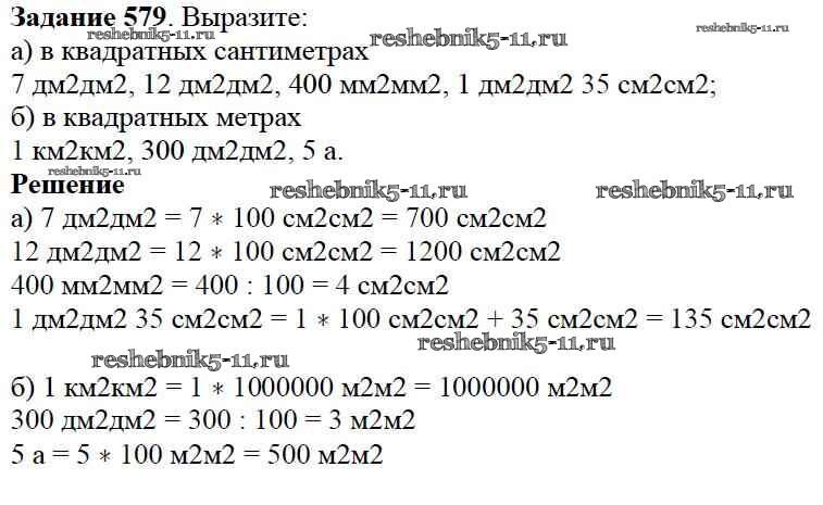 Готовая домашняя работа с ответами по Математике за 5 класс Дорофеев, Шарыгин, Суворова, Бунимович, Кузнецова, Минаева, Рослова Учебник Просвещение 2015 ФГОС - 7.4. Площадь прямоугольника 579