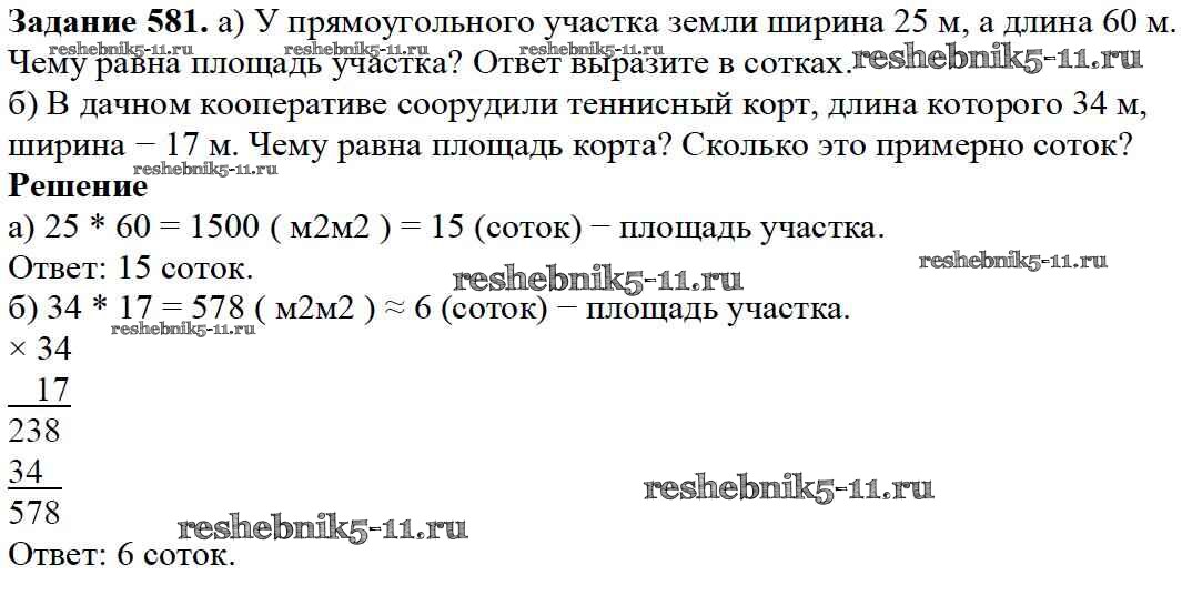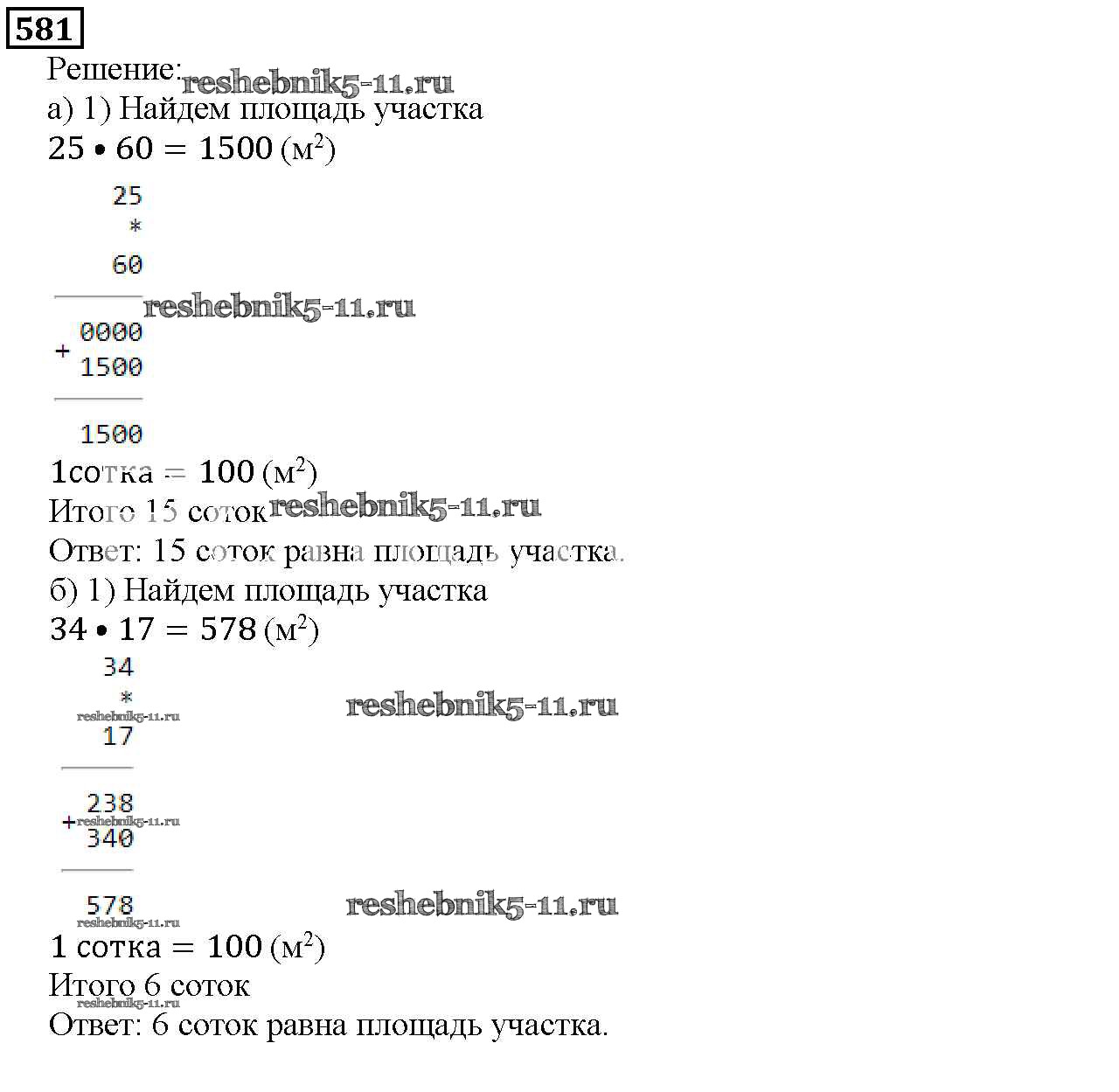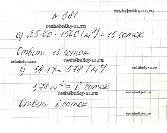 Готовая домашняя работа с ответами по Математике за 5 класс Дорофеев, Шарыгин, Суворова, Бунимович, Кузнецова, Минаева, Рослова Учебник Просвещение 2015 ФГОС - 7.4. Площадь прямоугольника 581