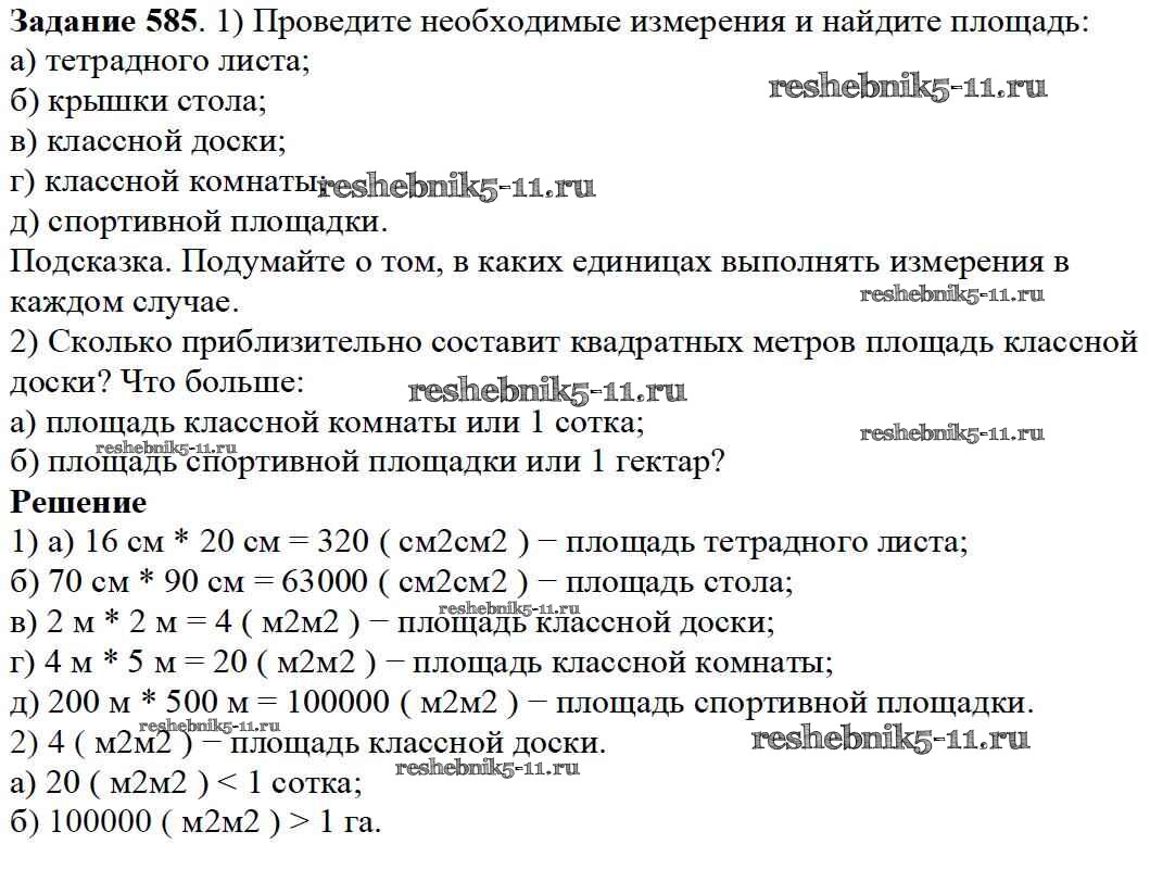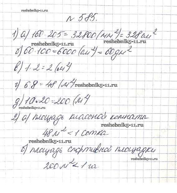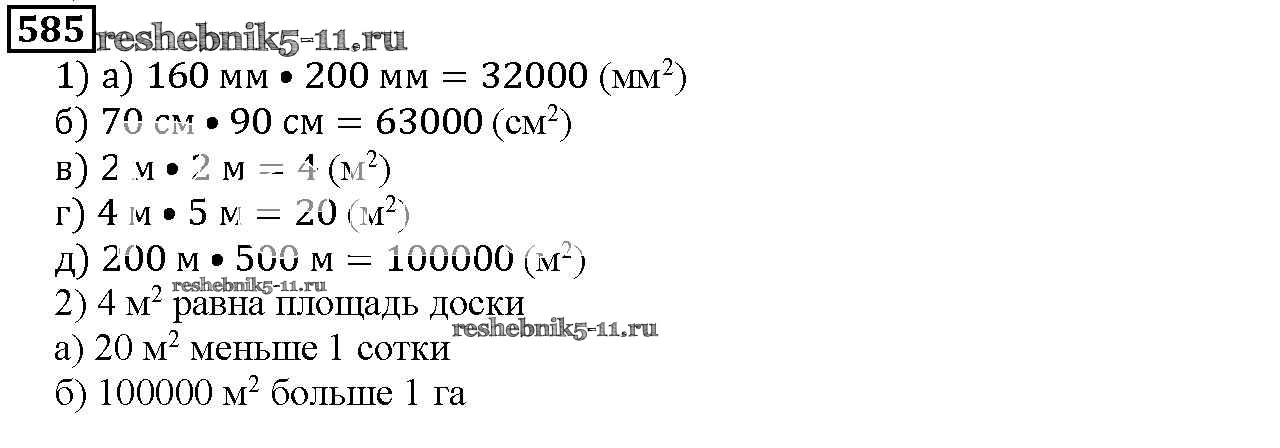 Готовая домашняя работа с ответами по Математике за 5 класс Дорофеев, Шарыгин, Суворова, Бунимович, Кузнецова, Минаева, Рослова Учебник Просвещение 2015 ФГОС - 7.4. Площадь прямоугольника 585