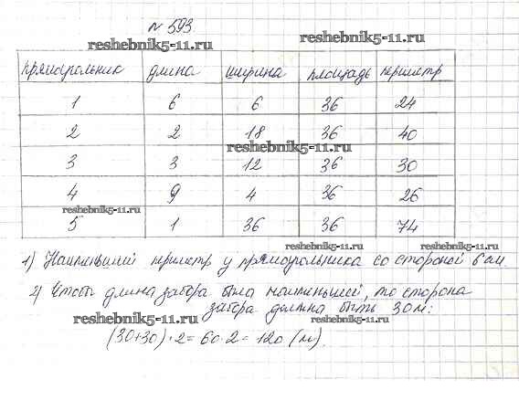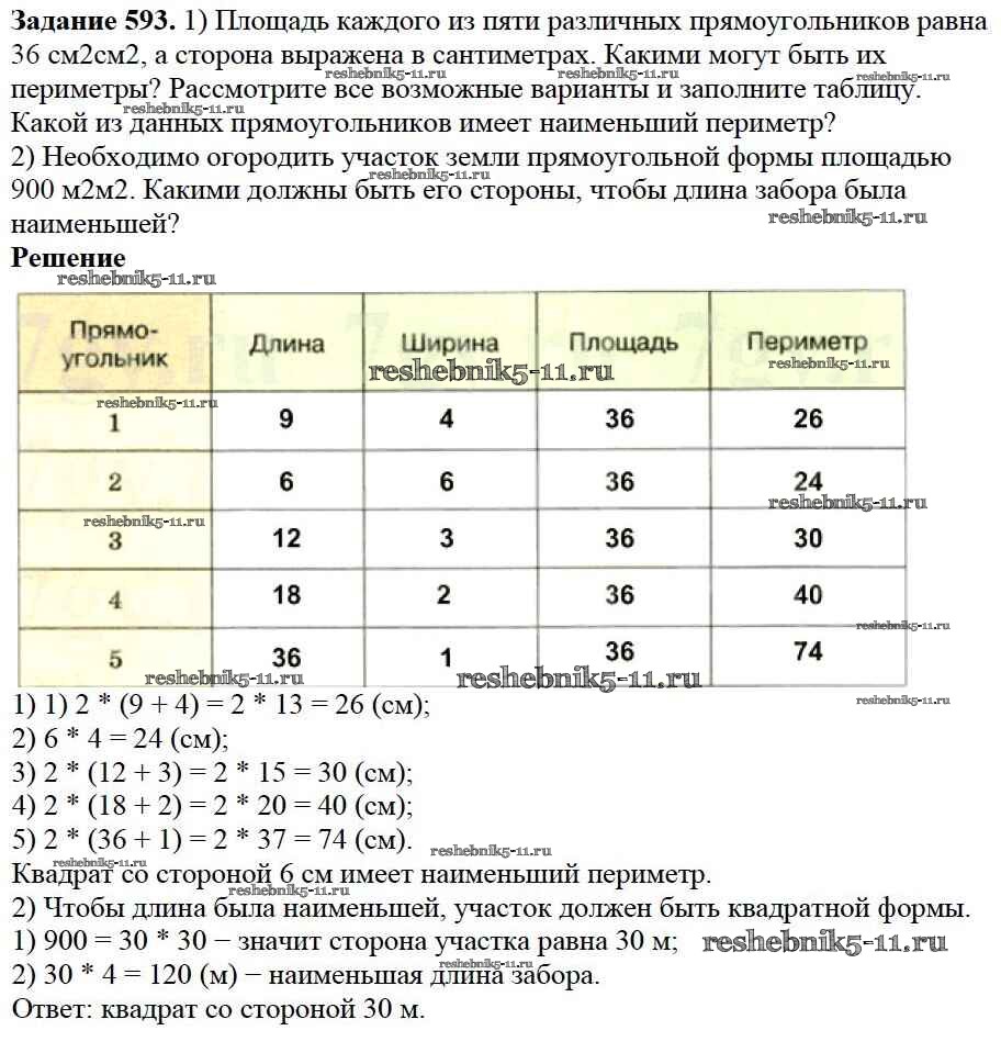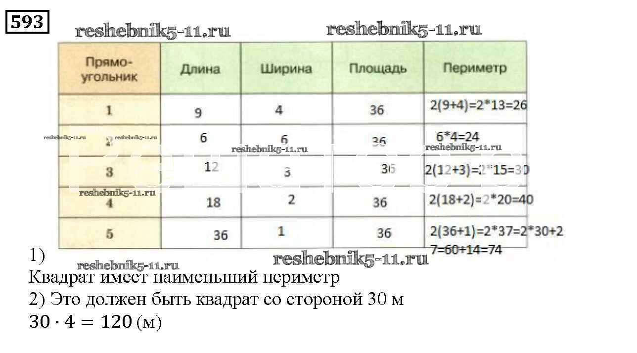 Готовая домашняя работа с ответами по Математике за 5 класс Дорофеев, Шарыгин, Суворова, Бунимович, Кузнецова, Минаева, Рослова Учебник Просвещение 2015 ФГОС - 7.4. Площадь прямоугольника 593