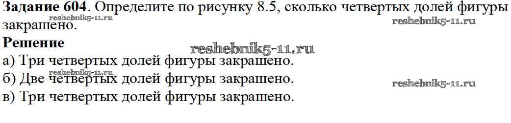 Готовая домашняя работа с ответами по Математике за 5 класс Дорофеев, Шарыгин, Суворова, Бунимович, Кузнецова, Минаева, Рослова Учебник Просвещение 2015 ФГОС - 8.1. Доли 604