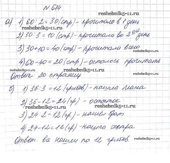 Готовая домашняя работа с ответами по Математике за 5 класс Дорофеев, Шарыгин, Суворова, Бунимович, Кузнецова, Минаева, Рослова Учебник Просвещение 2015 ФГОС - 8.1. Доли 614