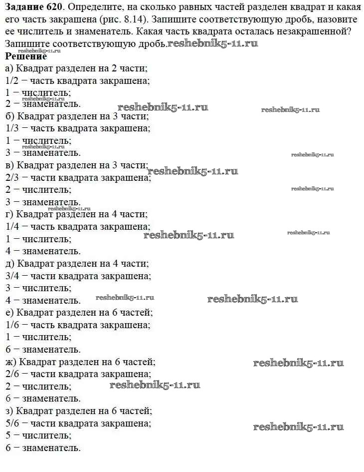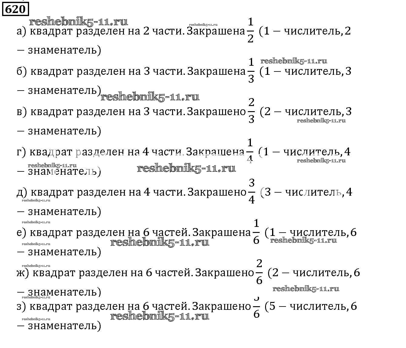 Готовая домашняя работа с ответами по Математике за 5 класс Дорофеев, Шарыгин, Суворова, Бунимович, Кузнецова, Минаева, Рослова Учебник Просвещение 2015 ФГОС - 8.2. Что такое дробь 620