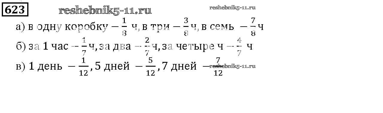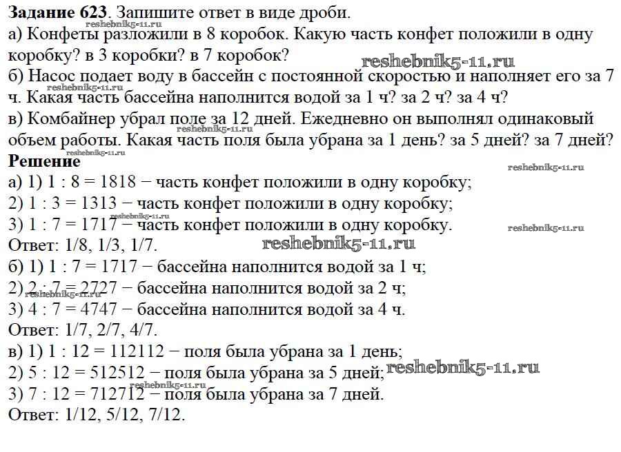 Готовая домашняя работа с ответами по Математике за 5 класс Дорофеев, Шарыгин, Суворова, Бунимович, Кузнецова, Минаева, Рослова Учебник Просвещение 2015 ФГОС - 8.2. Что такое дробь 623
