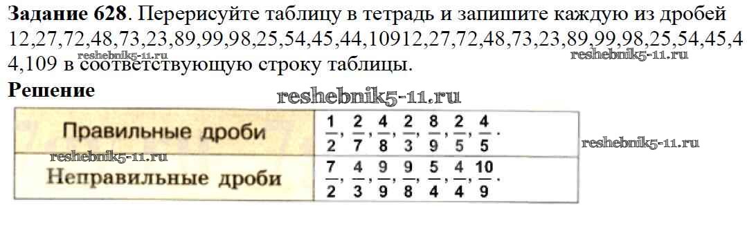 Готовая домашняя работа с ответами по Математике за 5 класс Дорофеев, Шарыгин, Суворова, Бунимович, Кузнецова, Минаева, Рослова Учебник Просвещение 2015 ФГОС - 8.2. Что такое дробь 628
