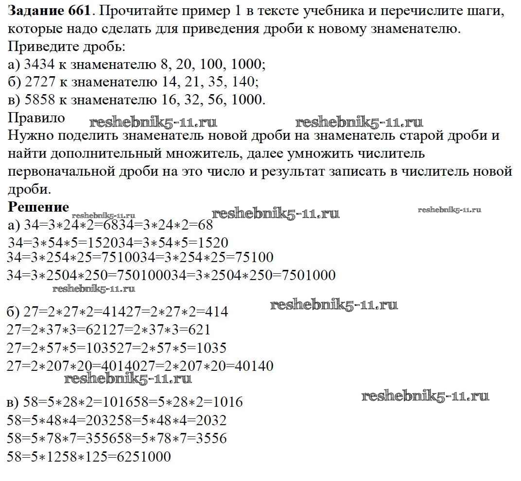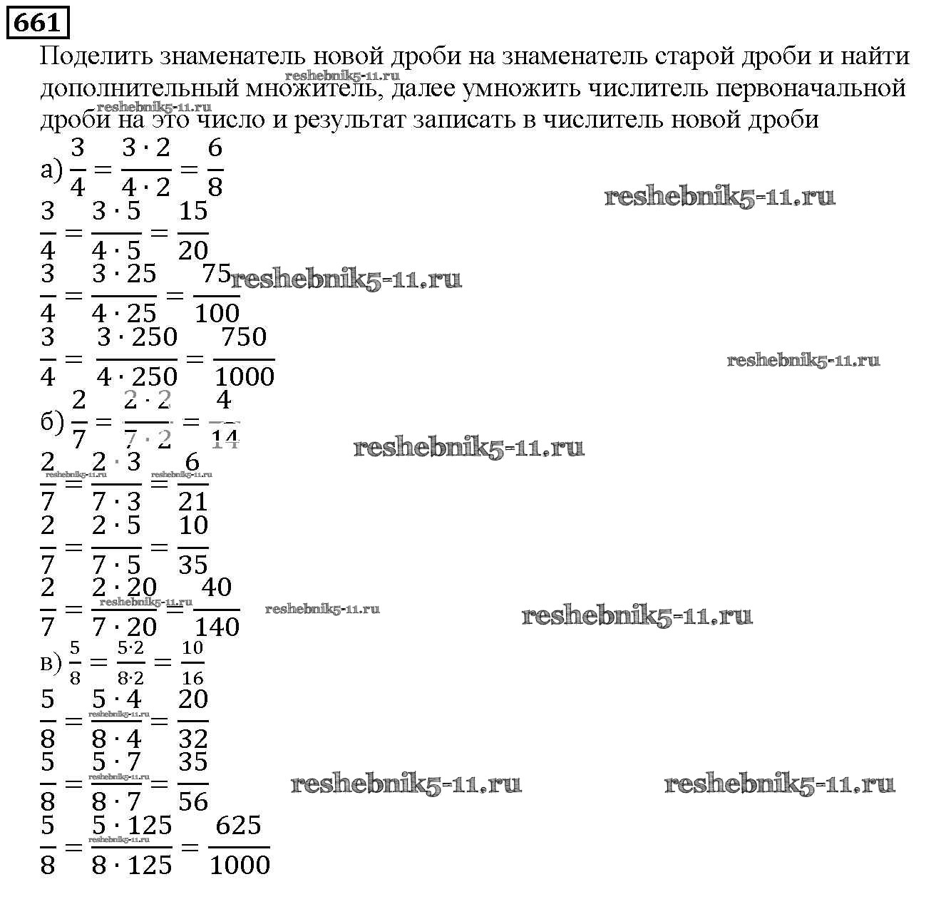 Готовая домашняя работа с ответами по Математике за 5 класс Дорофеев, Шарыгин, Суворова, Бунимович, Кузнецова, Минаева, Рослова Учебник Просвещение 2015 ФГОС - 8.3. Основное свойство дроби 661