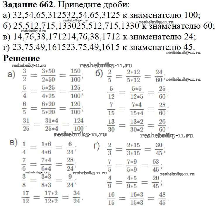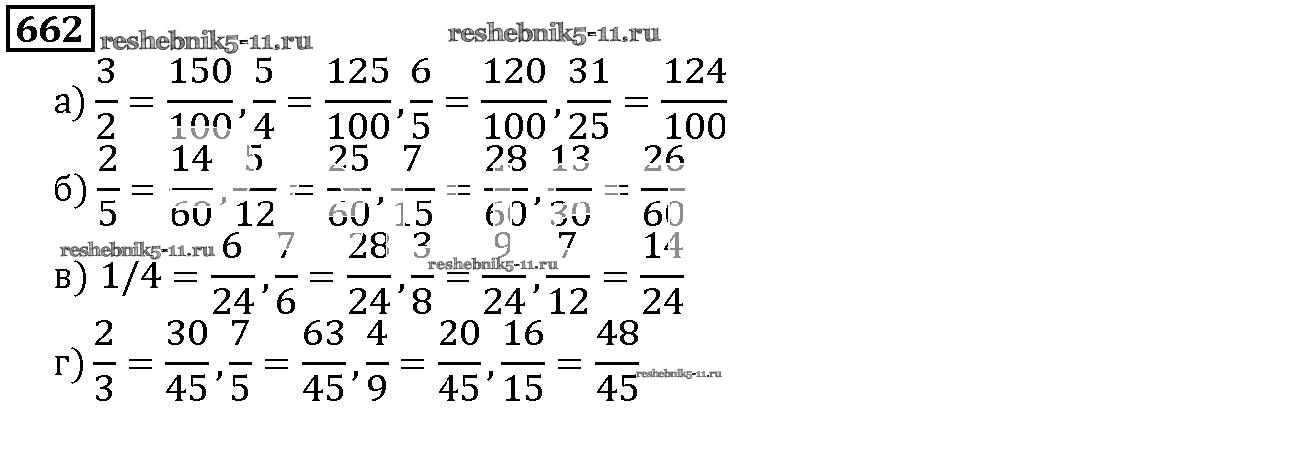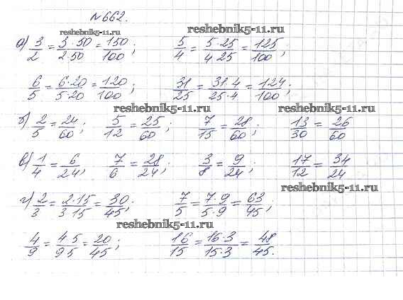 Готовая домашняя работа с ответами по Математике за 5 класс Дорофеев, Шарыгин, Суворова, Бунимович, Кузнецова, Минаева, Рослова Учебник Просвещение 2015 ФГОС - 8.3. Основное свойство дроби 662
