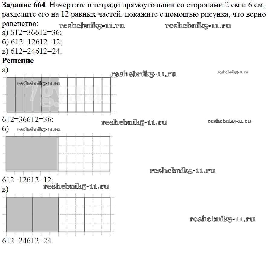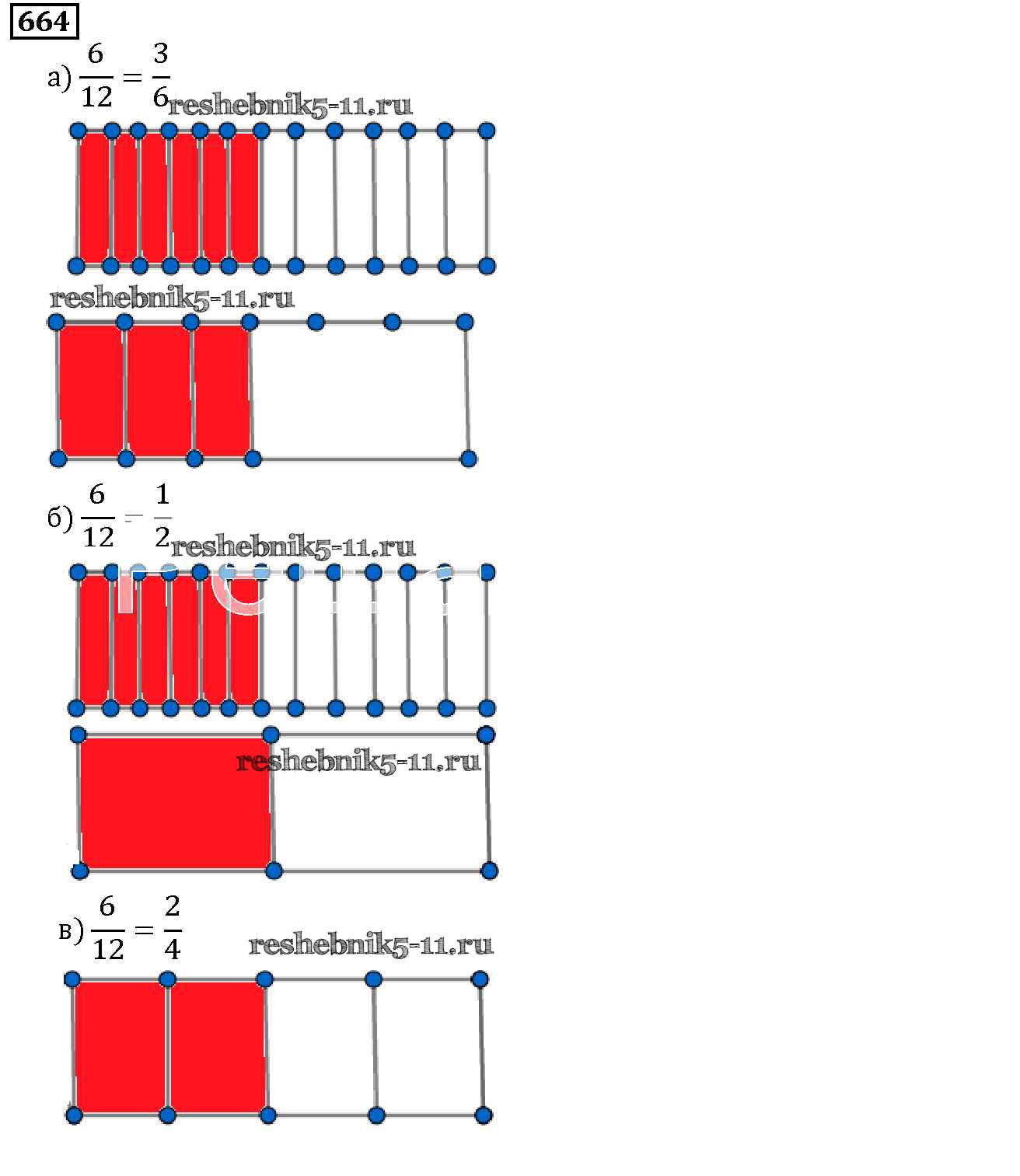 Готовая домашняя работа с ответами по Математике за 5 класс Дорофеев, Шарыгин, Суворова, Бунимович, Кузнецова, Минаева, Рослова Учебник Просвещение 2015 ФГОС - 8.3. Основное свойство дроби 664
