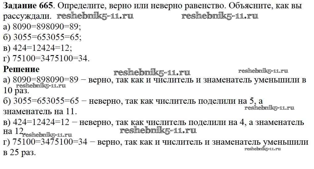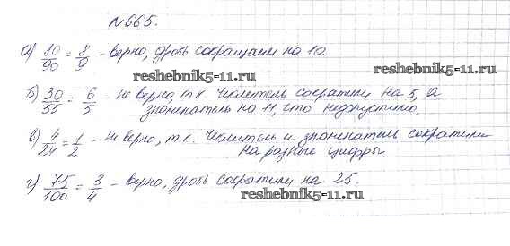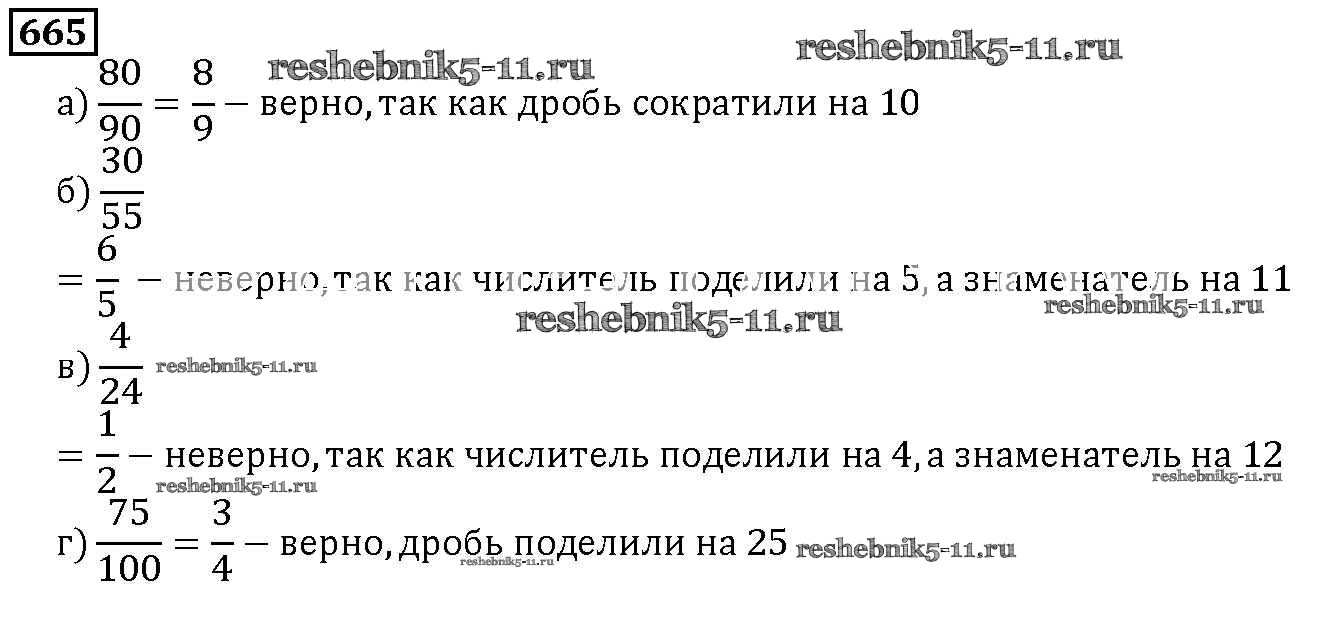Готовая домашняя работа с ответами по Математике за 5 класс Дорофеев, Шарыгин, Суворова, Бунимович, Кузнецова, Минаева, Рослова Учебник Просвещение 2015 ФГОС - 8.3. Основное свойство дроби 665