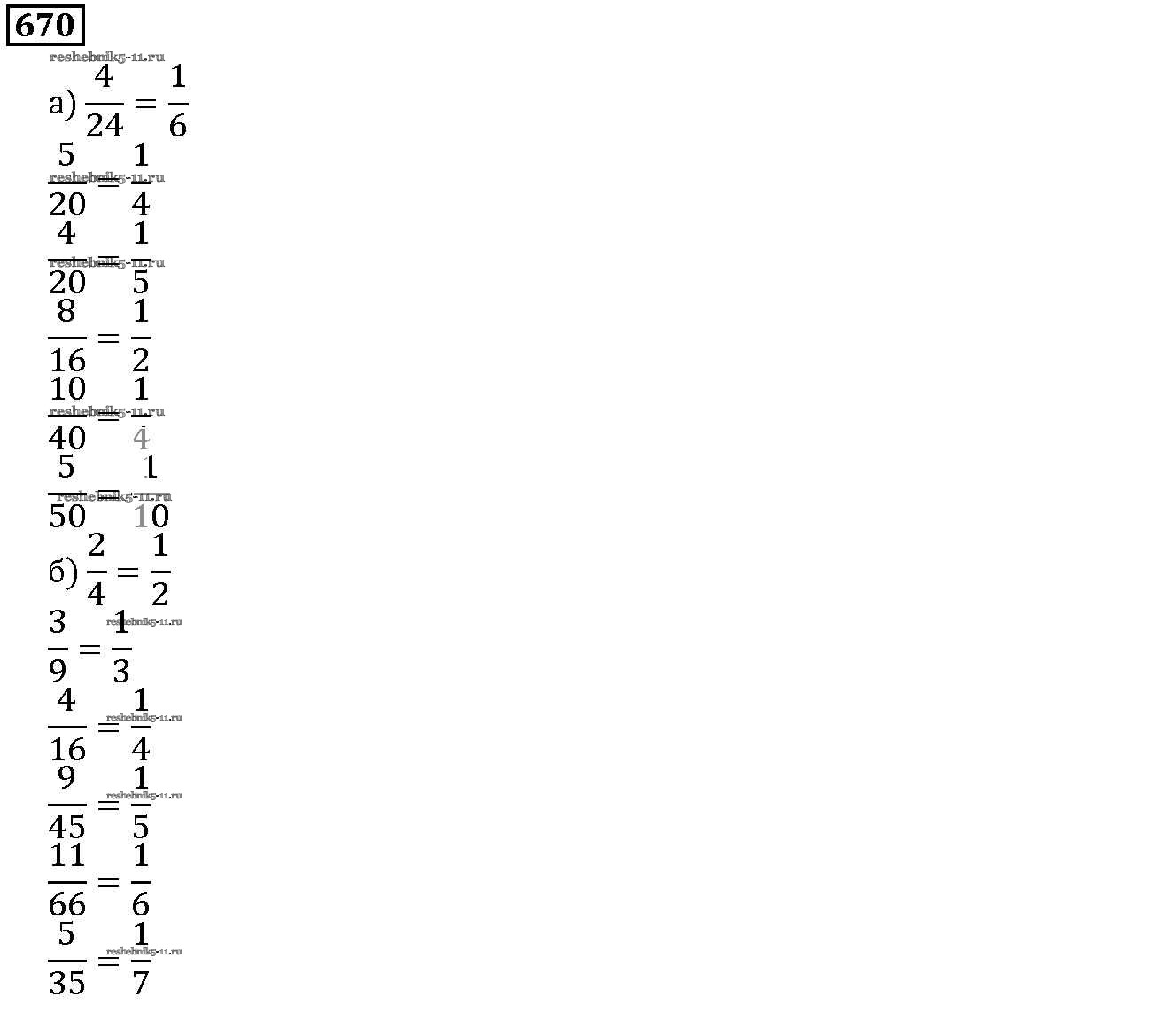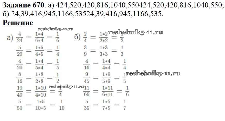 Готовая домашняя работа с ответами по Математике за 5 класс Дорофеев, Шарыгин, Суворова, Бунимович, Кузнецова, Минаева, Рослова Учебник Просвещение 2015 ФГОС - 8.3. Основное свойство дроби 670