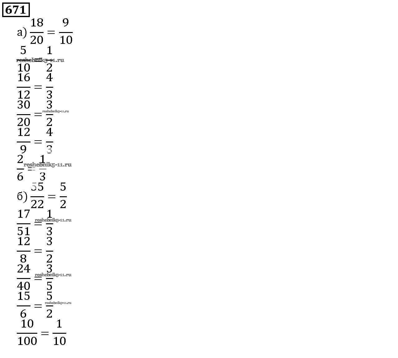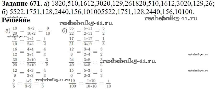 Готовая домашняя работа с ответами по Математике за 5 класс Дорофеев, Шарыгин, Суворова, Бунимович, Кузнецова, Минаева, Рослова Учебник Просвещение 2015 ФГОС - 8.3. Основное свойство дроби 671