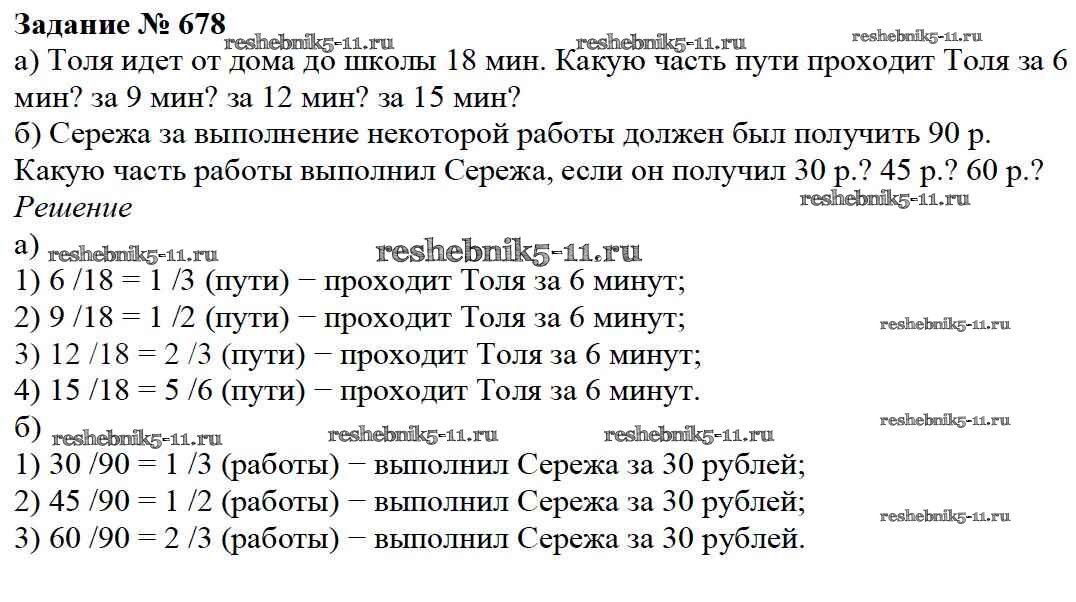 Готовая домашняя работа с ответами по Математике за 5 класс Дорофеев, Шарыгин, Суворова, Бунимович, Кузнецова, Минаева, Рослова Учебник Просвещение 2015 ФГОС - 8.3. Основное свойство дроби 678