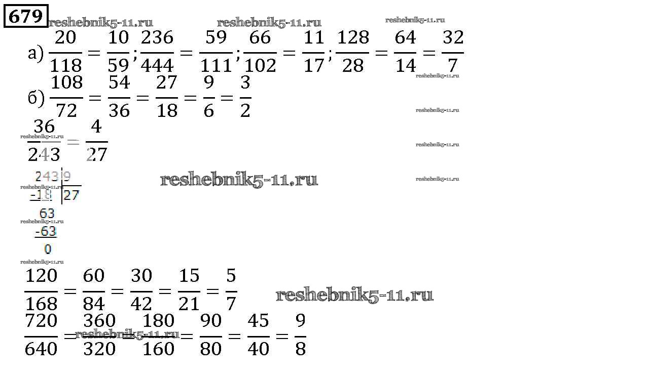 Готовая домашняя работа с ответами по Математике за 5 класс Дорофеев, Шарыгин, Суворова, Бунимович, Кузнецова, Минаева, Рослова Учебник Просвещение 2015 ФГОС - 8.3. Основное свойство дроби 679