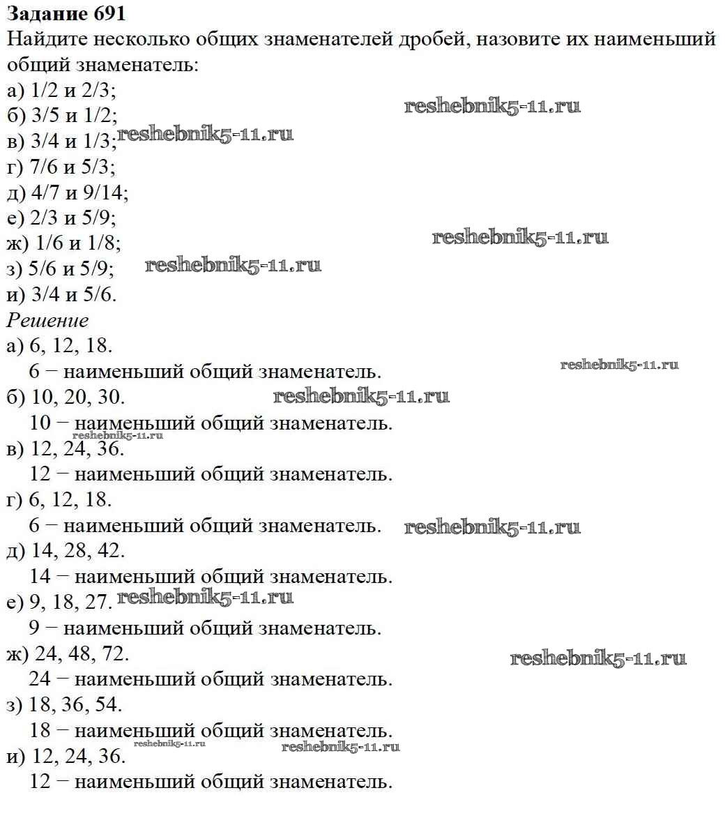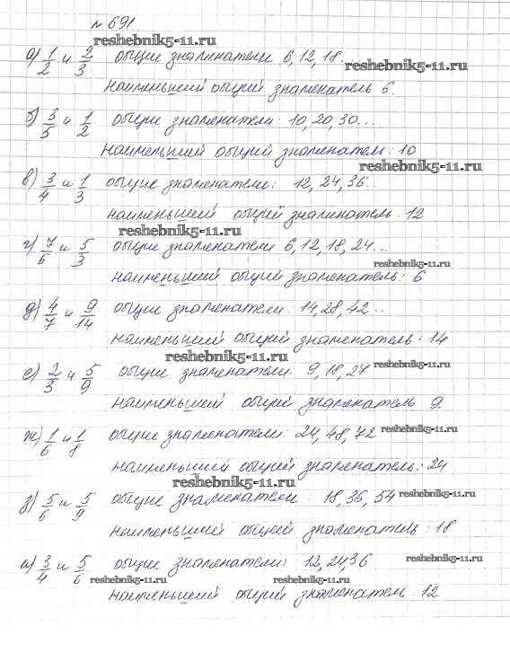Готовая домашняя работа с ответами по Математике за 5 класс Дорофеев, Шарыгин, Суворова, Бунимович, Кузнецова, Минаева, Рослова Учебник Просвещение 2015 ФГОС - 8.4. Приведение дробей к общему знаменателю 691