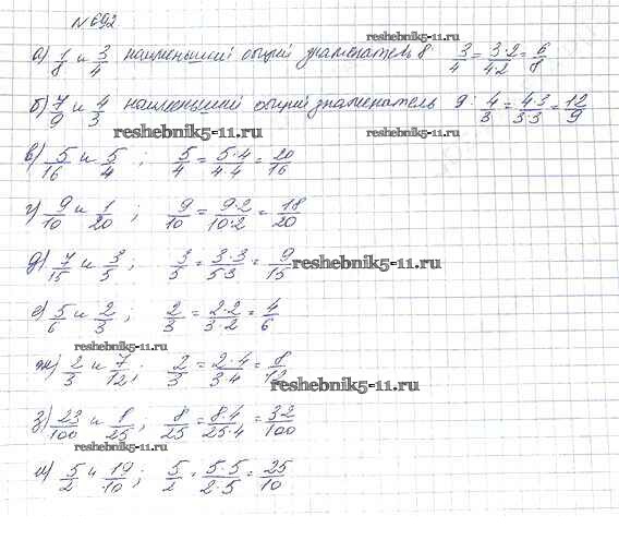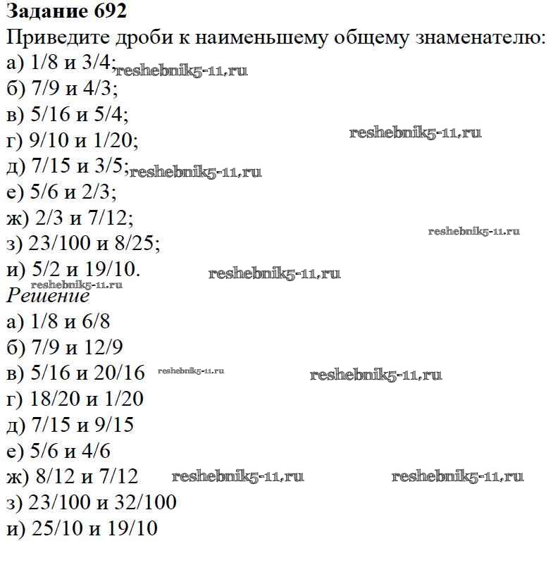 Готовая домашняя работа с ответами по Математике за 5 класс Дорофеев, Шарыгин, Суворова, Бунимович, Кузнецова, Минаева, Рослова Учебник Просвещение 2015 ФГОС - 8.4. Приведение дробей к общему знаменателю 692