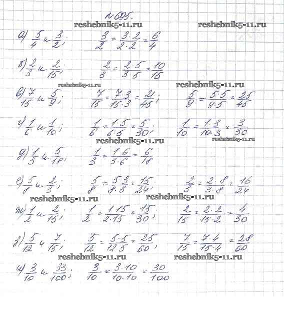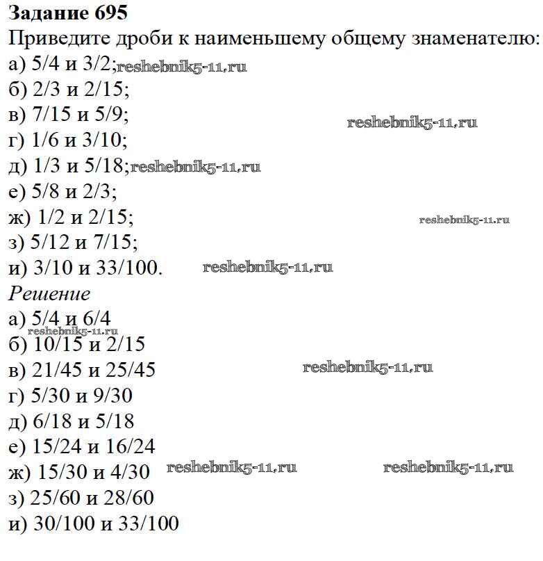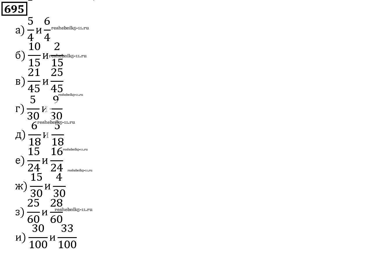 Готовая домашняя работа с ответами по Математике за 5 класс Дорофеев, Шарыгин, Суворова, Бунимович, Кузнецова, Минаева, Рослова Учебник Просвещение 2015 ФГОС - 8.4. Приведение дробей к общему знаменателю 695