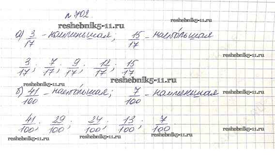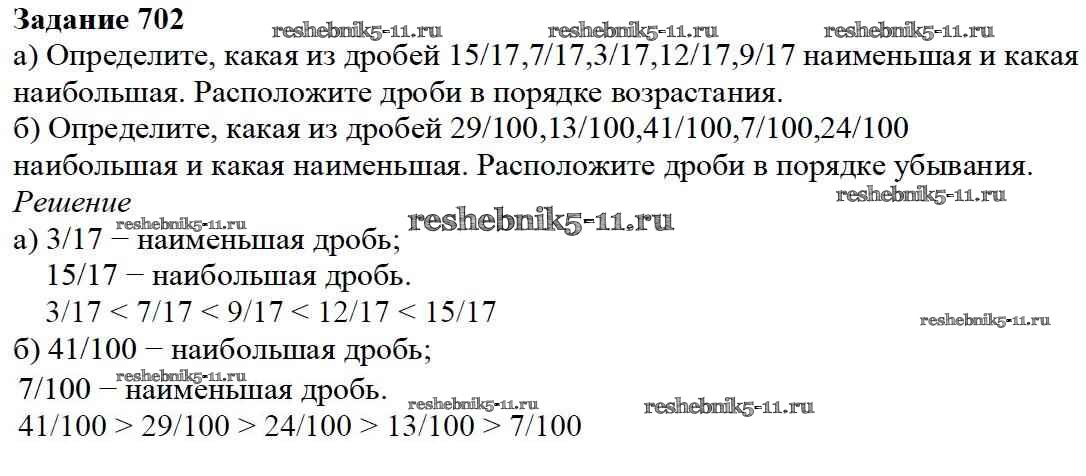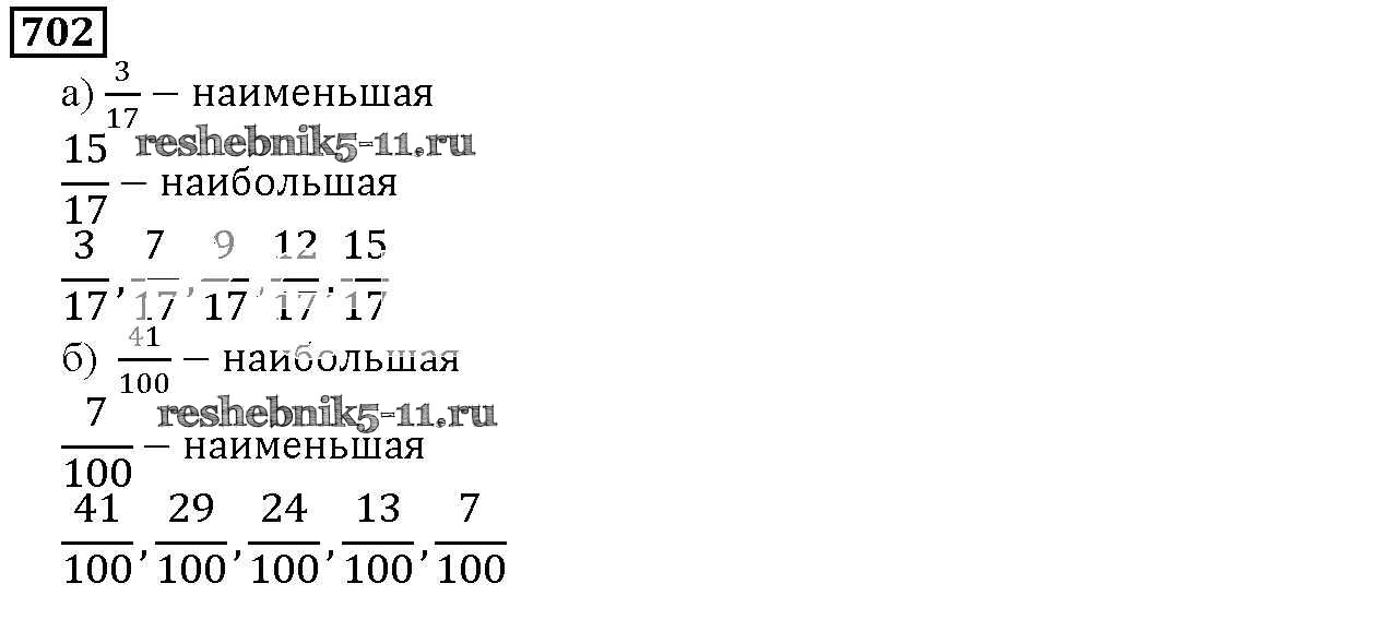 Готовая домашняя работа с ответами по Математике за 5 класс Дорофеев, Шарыгин, Суворова, Бунимович, Кузнецова, Минаева, Рослова Учебник Просвещение 2015 ФГОС - 8.5. Сравнение дробей 702