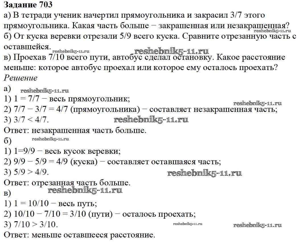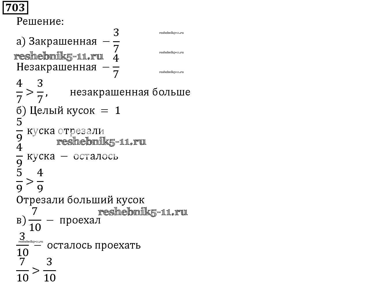 Готовая домашняя работа с ответами по Математике за 5 класс Дорофеев, Шарыгин, Суворова, Бунимович, Кузнецова, Минаева, Рослова Учебник Просвещение 2015 ФГОС - 8.5. Сравнение дробей 703