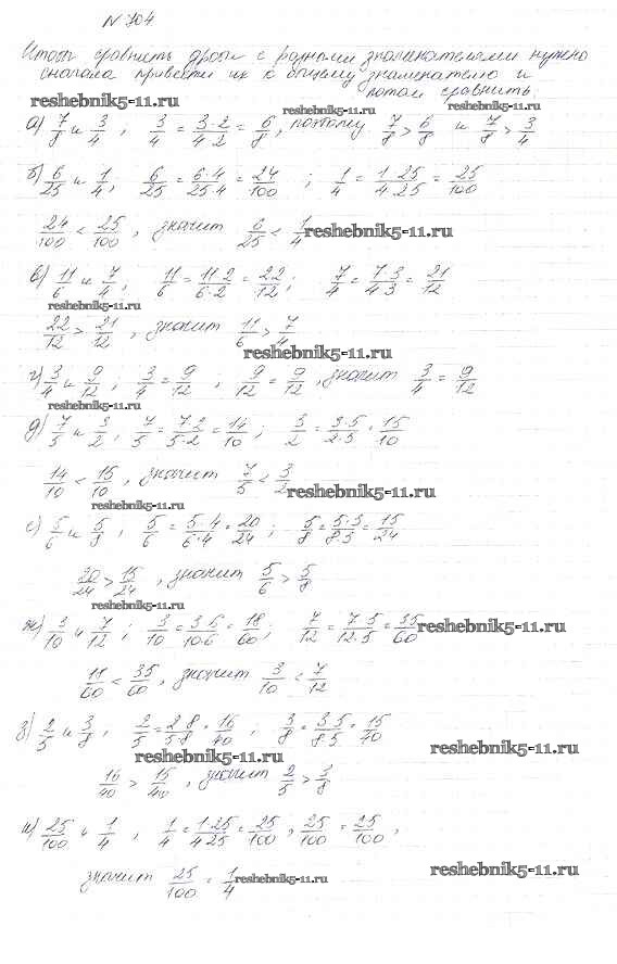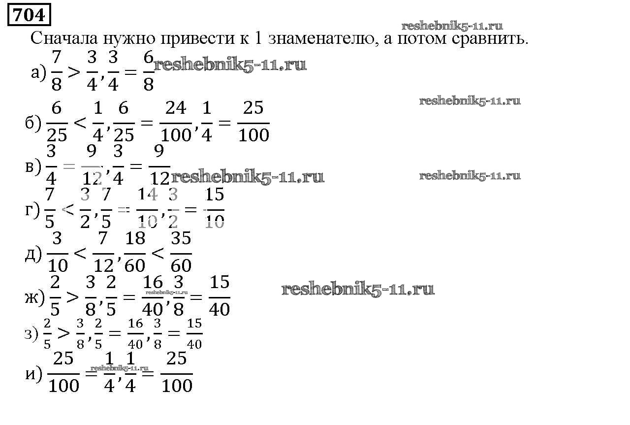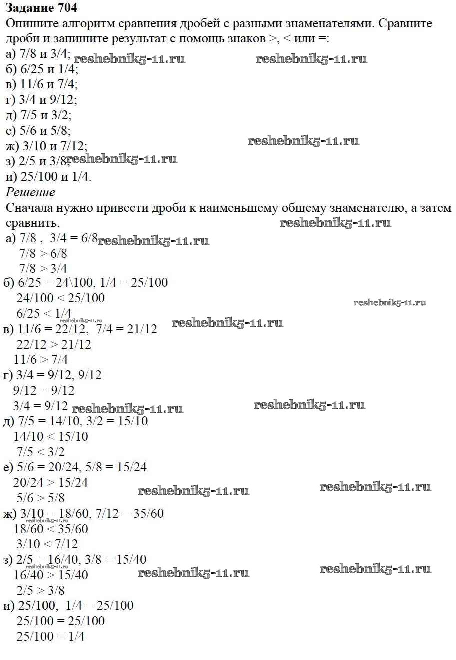 Готовая домашняя работа с ответами по Математике за 5 класс Дорофеев, Шарыгин, Суворова, Бунимович, Кузнецова, Минаева, Рослова Учебник Просвещение 2015 ФГОС - 8.5. Сравнение дробей 704