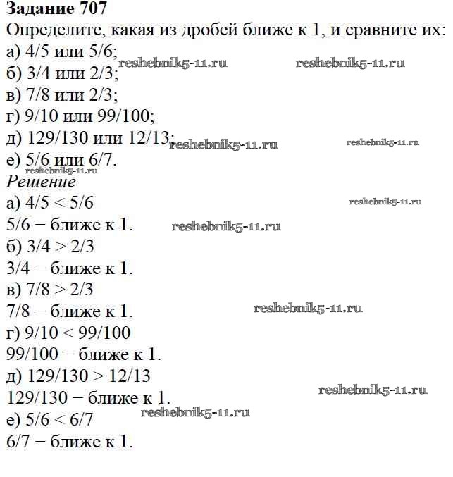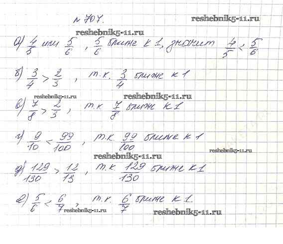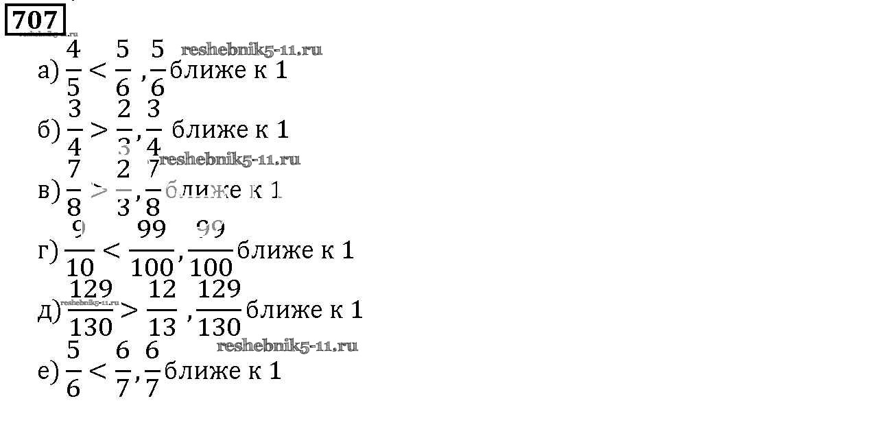 Готовая домашняя работа с ответами по Математике за 5 класс Дорофеев, Шарыгин, Суворова, Бунимович, Кузнецова, Минаева, Рослова Учебник Просвещение 2015 ФГОС - 8.5. Сравнение дробей 707