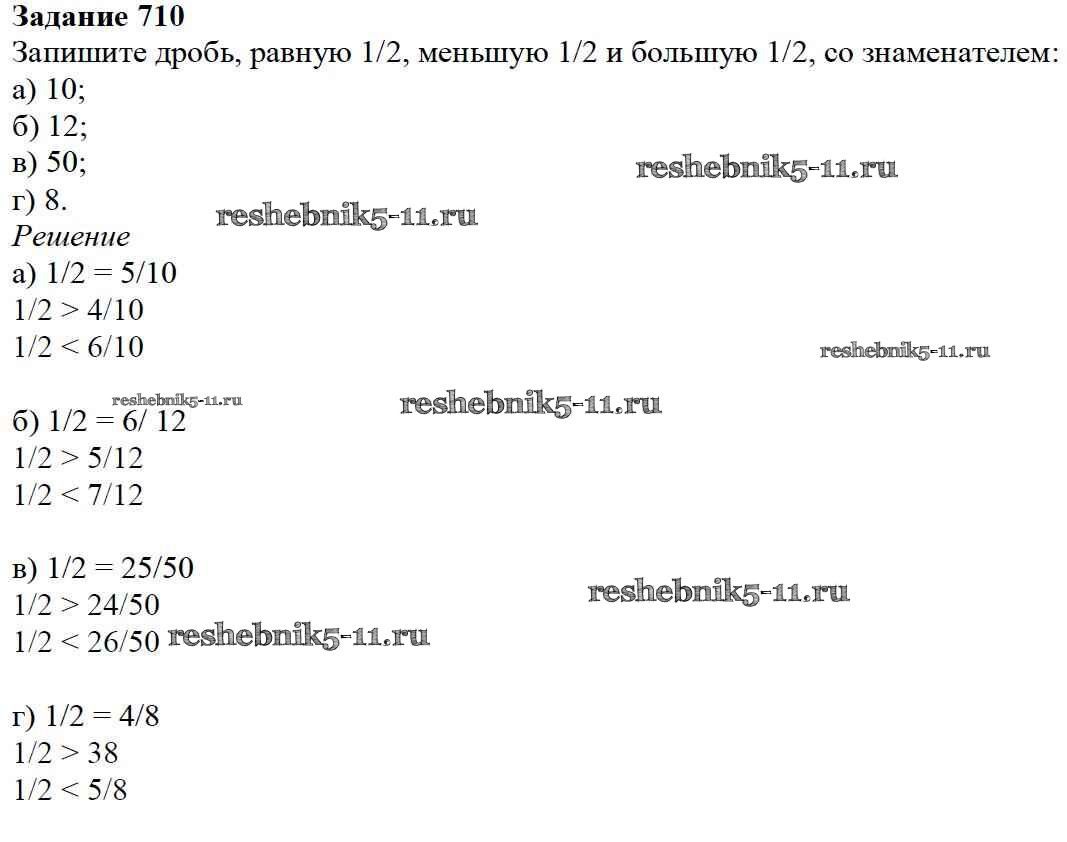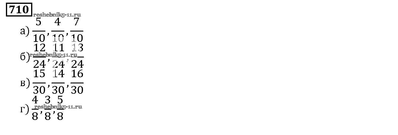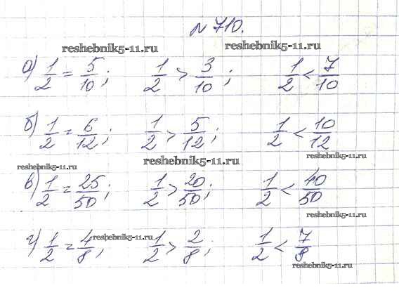 Готовая домашняя работа с ответами по Математике за 5 класс Дорофеев, Шарыгин, Суворова, Бунимович, Кузнецова, Минаева, Рослова Учебник Просвещение 2015 ФГОС - 8.5. Сравнение дробей 710
