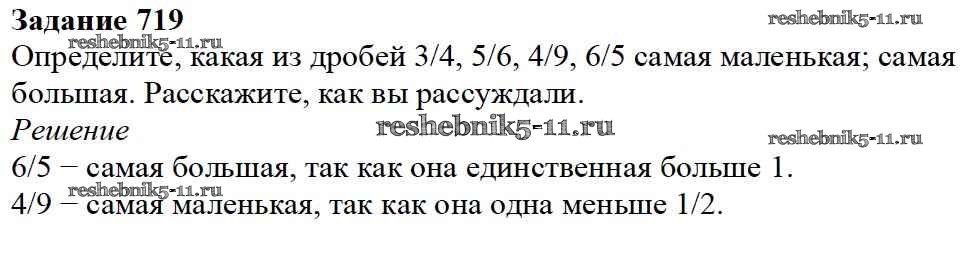 Готовая домашняя работа с ответами по Математике за 5 класс Дорофеев, Шарыгин, Суворова, Бунимович, Кузнецова, Минаева, Рослова Учебник Просвещение 2015 ФГОС - 8.5. Сравнение дробей 719