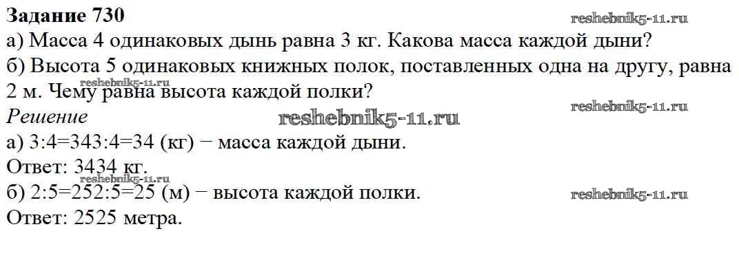 Готовая домашняя работа с ответами по Математике за 5 класс Дорофеев, Шарыгин, Суворова, Бунимович, Кузнецова, Минаева, Рослова Учебник Просвещение 2015 ФГОС - 8.6. Натуральные числа и дроби 730