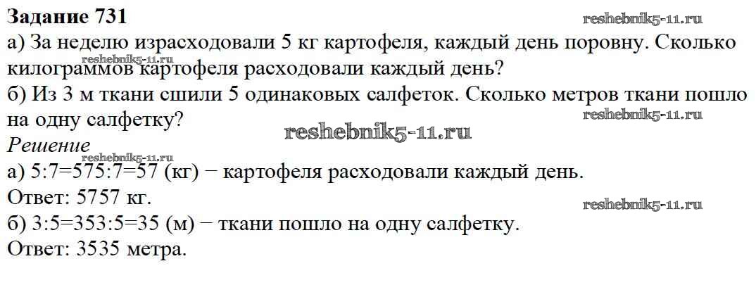 Готовая домашняя работа с ответами по Математике за 5 класс Дорофеев, Шарыгин, Суворова, Бунимович, Кузнецова, Минаева, Рослова Учебник Просвещение 2015 ФГОС - 8.6. Натуральные числа и дроби 731
