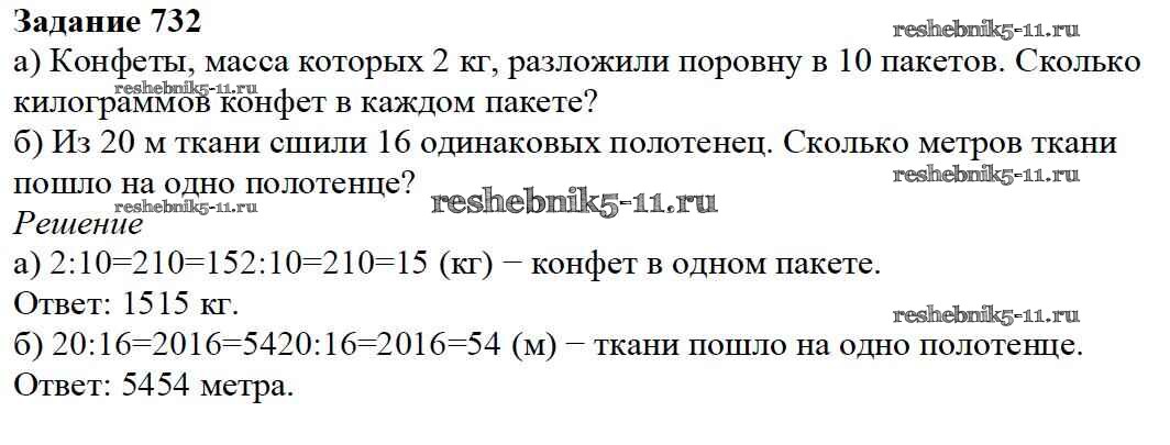 Готовая домашняя работа с ответами по Математике за 5 класс Дорофеев, Шарыгин, Суворова, Бунимович, Кузнецова, Минаева, Рослова Учебник Просвещение 2015 ФГОС - 8.6. Натуральные числа и дроби 732