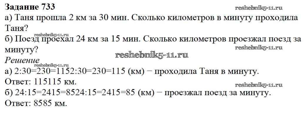 Готовая домашняя работа с ответами по Математике за 5 класс Дорофеев, Шарыгин, Суворова, Бунимович, Кузнецова, Минаева, Рослова Учебник Просвещение 2015 ФГОС - 8.6. Натуральные числа и дроби 733