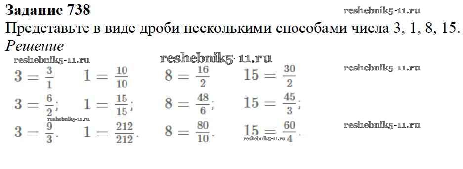 Готовая домашняя работа с ответами по Математике за 5 класс Дорофеев, Шарыгин, Суворова, Бунимович, Кузнецова, Минаева, Рослова Учебник Просвещение 2015 ФГОС - 8.6. Натуральные числа и дроби 738