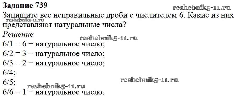 Готовая домашняя работа с ответами по Математике за 5 класс Дорофеев, Шарыгин, Суворова, Бунимович, Кузнецова, Минаева, Рослова Учебник Просвещение 2015 ФГОС - 8.6. Натуральные числа и дроби 739