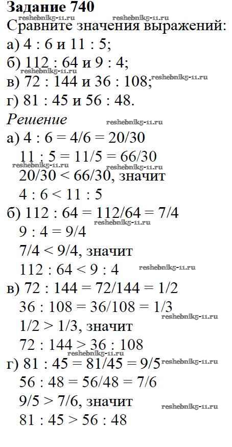 Готовая домашняя работа с ответами по Математике за 5 класс Дорофеев, Шарыгин, Суворова, Бунимович, Кузнецова, Минаева, Рослова Учебник Просвещение 2015 ФГОС - 8.6. Натуральные числа и дроби 740
