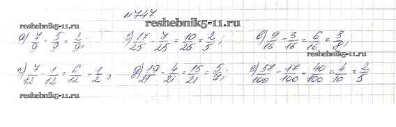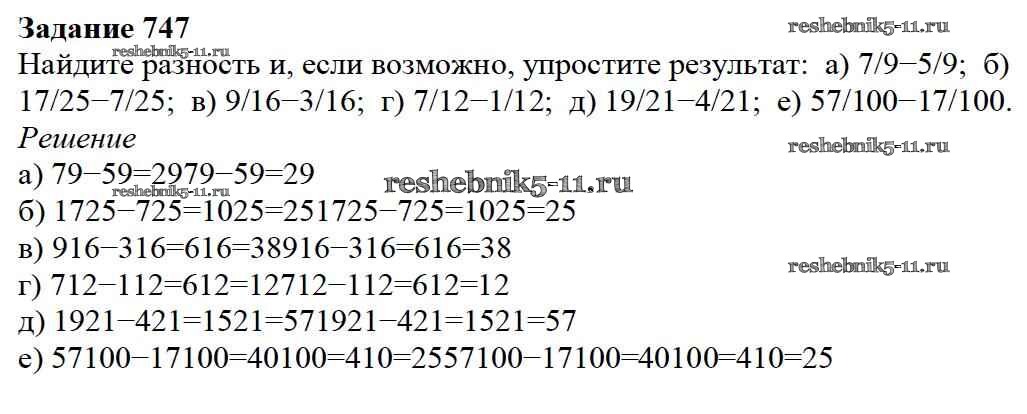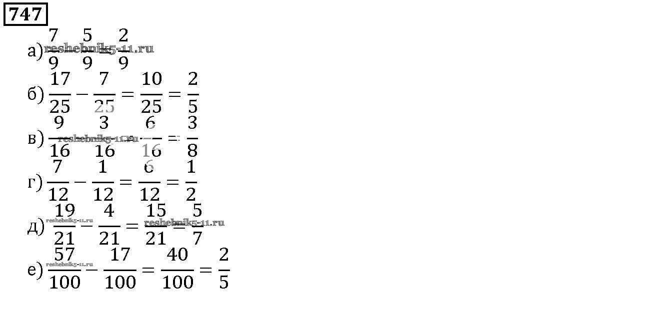 Готовая домашняя работа с ответами по Математике за 5 класс Дорофеев, Шарыгин, Суворова, Бунимович, Кузнецова, Минаева, Рослова Учебник Просвещение 2015 ФГОС - 9.1. Сложение и вычитание дробей 747