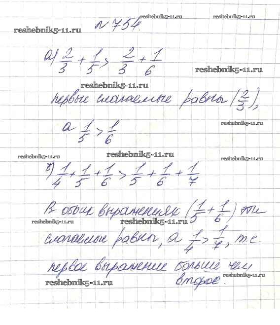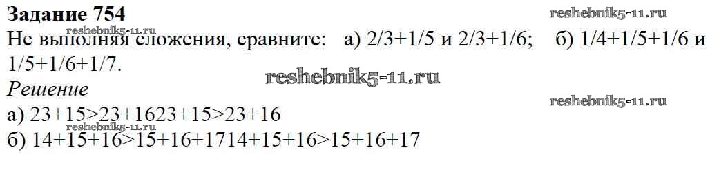 Готовая домашняя работа с ответами по Математике за 5 класс Дорофеев, Шарыгин, Суворова, Бунимович, Кузнецова, Минаева, Рослова Учебник Просвещение 2015 ФГОС - 9.1. Сложение и вычитание дробей 754